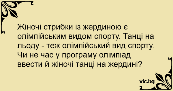 Жіночі стрибки із жердиною є олімпійським видом спорту. Танці на льоду - теж олімпійський вид спорту. Чи не час у програму олімпіад ввести й жіночі танці на жердині?