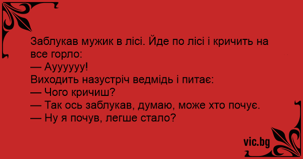 Заблукав мужик в лісі. Йде по лісі і кричить на все горло: