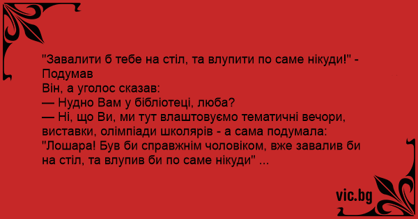 "Завалити б тебе на стіл, та влупити по саме нікуди!" - Подумав