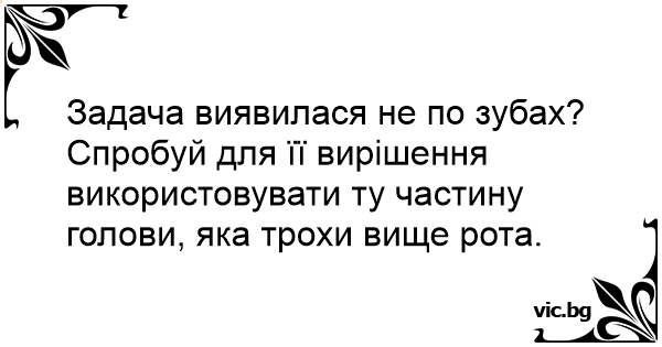 Задача виявилася не по зубах? Спробуй для її вирішення використовувати ту частину голови, яка трохи вище рота.