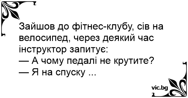 Зайшов до фітнес-клубу, сів на велосипед, через деякий час інструктор запитує: