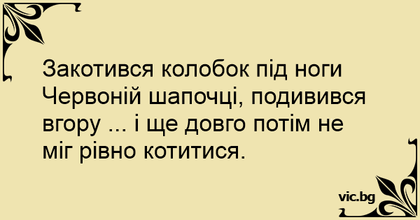 Закотився колобок під ноги Червоній шапочці, подивився вгору ... і ще довго потім не міг рівно котитися.