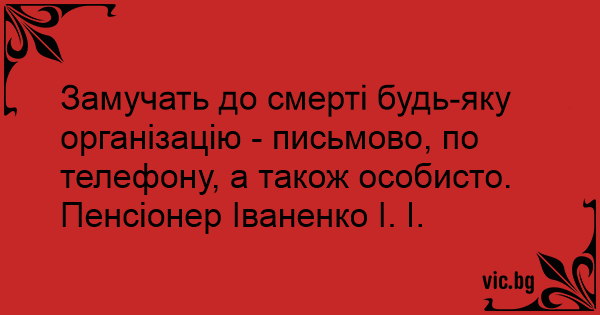 Замучать до смерті будь-яку організацію - письмово, по телефону, а також особисто. Пенсіонер Іваненко І. І.