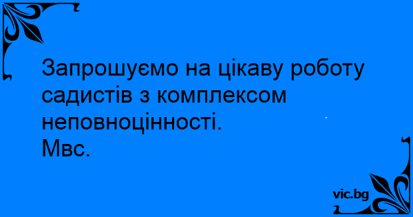 Запрошуємо на цікаву роботу садистів з комплексом неповноцінності.