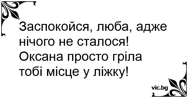 Заспокойся, люба, адже нічого не сталося! Оксана просто гріла тобі місце у ліжку!