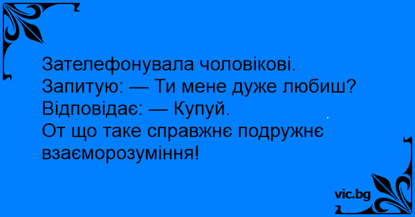 Зателефонувала чоловікові. Запитую: — Ти мене дуже любиш?
