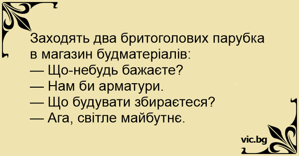 Заходять два бритоголових парубка в магазин будматеріалів: