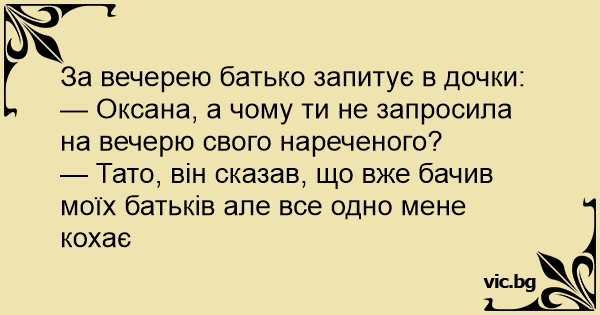 — Оксана, а чому ти не запросила на вечерю свого нареченого?