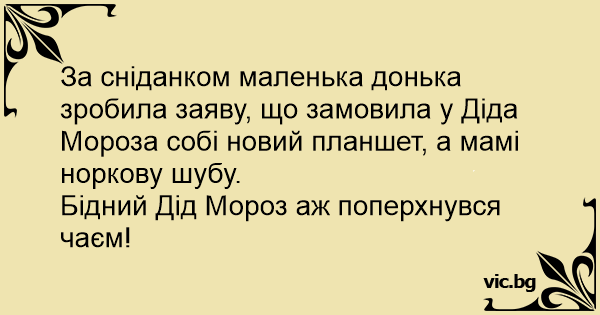 За сніданком маленька донька зробила заяву, що замовила у Діда Мороза собі новий планшет, а мамі норкову шубу.