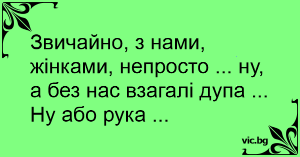Звичайно, з нами, жінками, непросто ... ну, а без нас взагалі дупа ...
