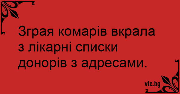 Зграя комарів вкрала з лікарні списки донорів з адресами.