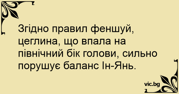 Згідно правил феншуй, цеглина, що впала на північний бік голови, сильно порушує баланс Ін-Янь.