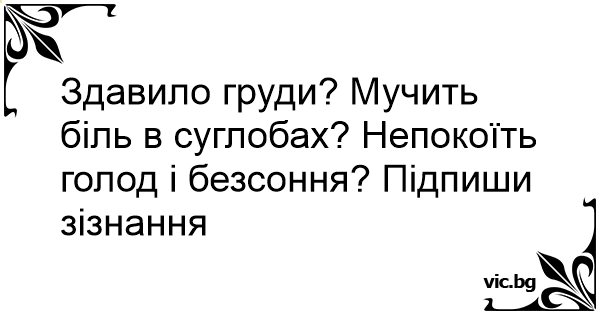Здавило груди? Мучить біль в суглобах? Непокоїть голод і безсоння? Підпиши зізнання