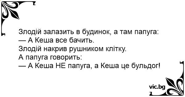 — А Кеша НЕ папуга, а Кеша це бульдог!