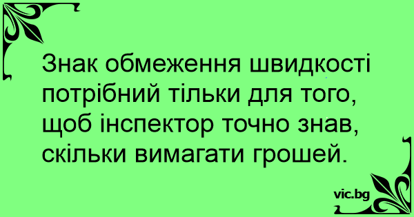 Знак обмеження швидкості потрібний тільки для того, щоб інспектор точно знав, скільки вимагати грошей.