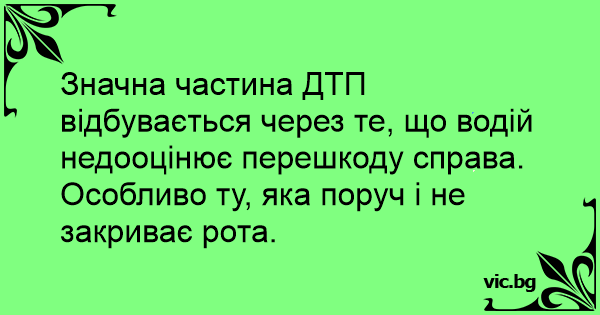 Значна частина ДТП відбувається через те, що водій недооцінює перешкоду справа. Особливо ту, яка поруч і не закриває рота.