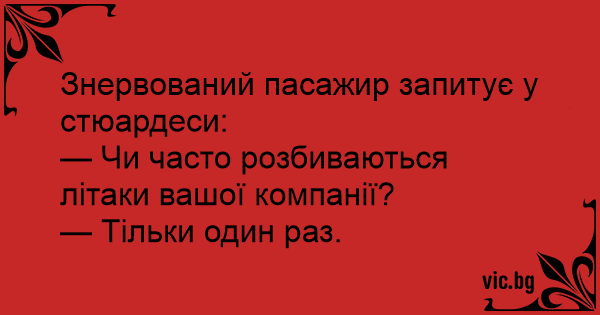 Знервований пасажир запитує у стюардеси: