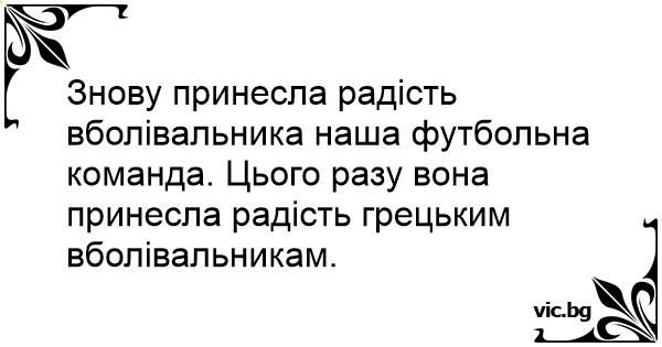 Знову принесла радість вболівальника наша футбольна команда. Цього разу вона принесла радість грецьким вболівальникам.