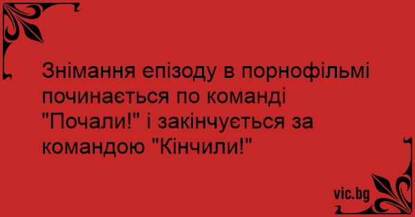 Знімання епізоду в порнофільмі починається по команді "Почали!" і закінчується за командою "Кінчили!"