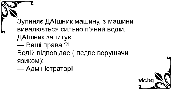 Водій відповідає ( ледве ворушачи язиком):