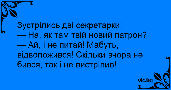 — Ай, і не питай! Мабуть, відволожився! Скільки вчора не бився, так і не вистрілив!