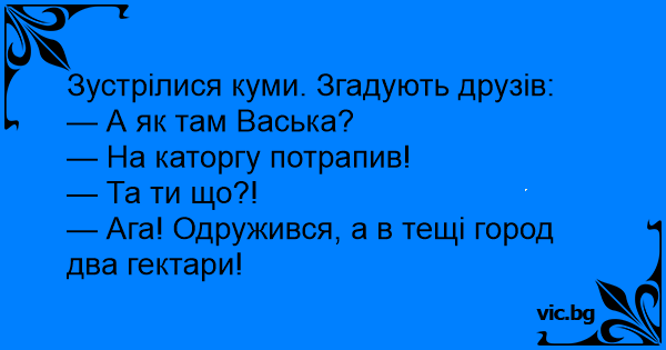 — Ага! Одружився, а в тещі город два гектари!