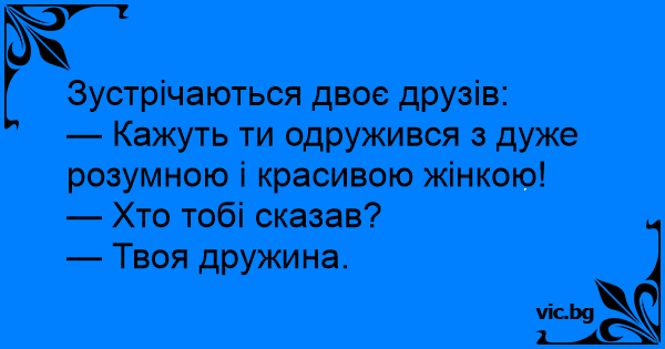 — Кажуть ти одружився з дуже розумною і красивою жінкою!