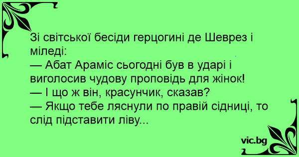 — Абат Араміс сьогодні був в ударі і виголосив чудову проповідь для жінок!