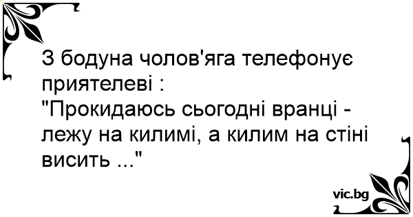 "Прокидаюсь сьогодні вранці - лежу на килимі, а килим на стіні висить ..."