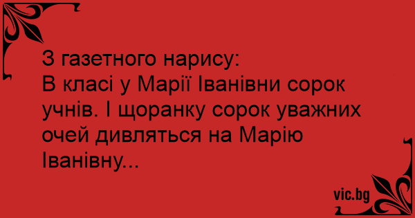 В класі у Марії Іванівни сорок учнів. І щоранку сорок уважних очей дивляться на Марію Іванівну...