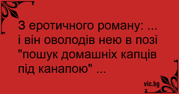 З еротичного роману: ... і він оволодів нею в позі "пошук домашніх капців під канапою" ...