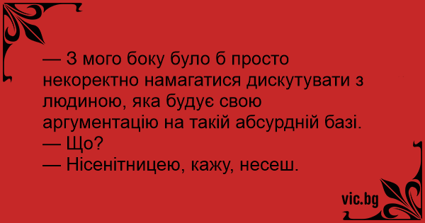 — Нісенітницею, кажу, несеш.