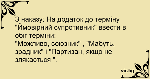 З наказу: На додаток до терміну "Ймовірний супротивник" ввести в обіг терміни: