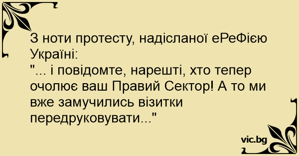 "... і повідомте, нарешті, хто тепер очолює ваш Правий Сектор! А то ми вже замучились візитки передруковувати..."