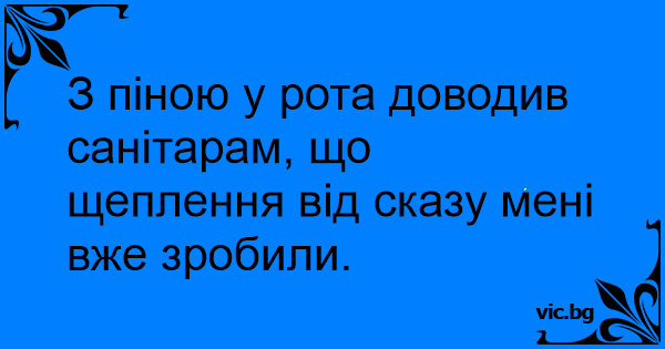 З піною у рота доводив санітарам, що щеплення від сказу мені вже зробили.