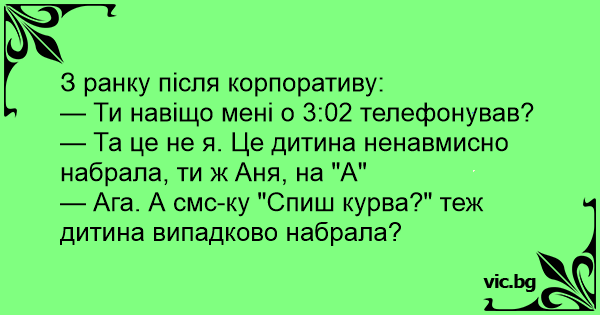 — Ага. А смс-ку "Спиш kуpba?" теж дитина випадково набрала?