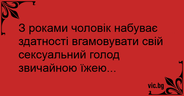 З роками чоловік набуває здатності вгамовувати свій сексуальний голод звичайною їжею...