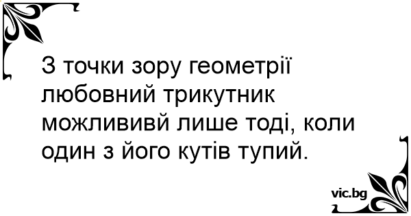 З точки зору геометрії любовний трикутник можлививй лише тоді, коли один з його кутів тупий.