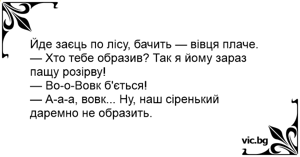 — А-а-а, вовк... Ну, наш сіренький даремно не образить.