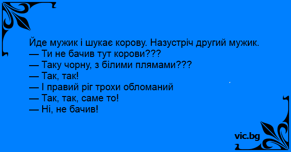 Йде мужик і шукає корову. Назустріч другий мужик.