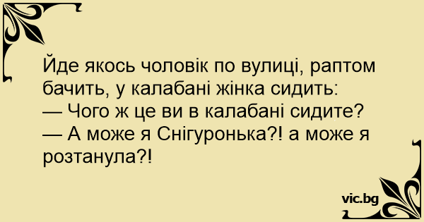 Йде якось чоловік по вулиці, раптом бачить, у калабані жінка сидить: