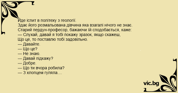 Старий пердун-професор, бажаючи їй сподобається, каже: