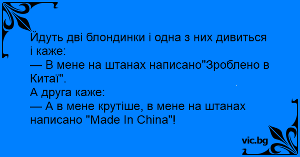 — А в мене крутіше, в мене на штанах написано "Маdе Іn Сhіnа"!