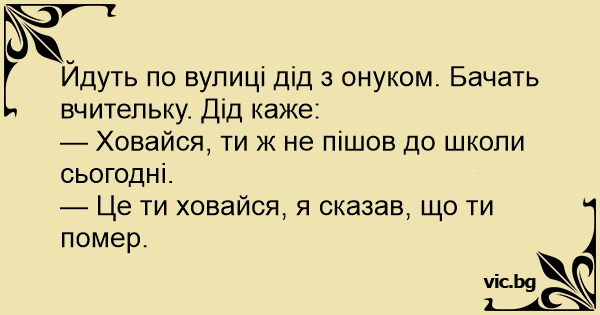 — Ховайся, ти ж не пішов до школи сьогодні.
