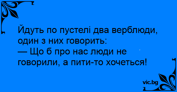 — Що б про нас люди не говорили, а пити-то хочеться!
