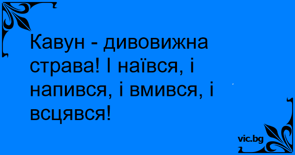 Кавун - дивовижна страва! І наївся, і напився, і вмився, і всцявся!