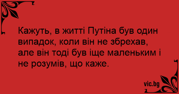 Кажуть, в житті Путіна був один випадок, коли він не збрехав, але він тоді був іще маленьким і не розумів, що каже.