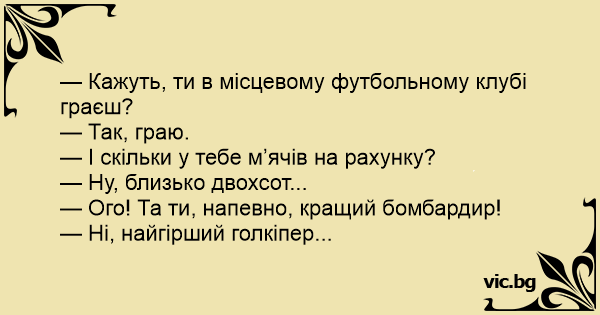 — Кажуть, ти в місцевому футбольному клубі граєш?