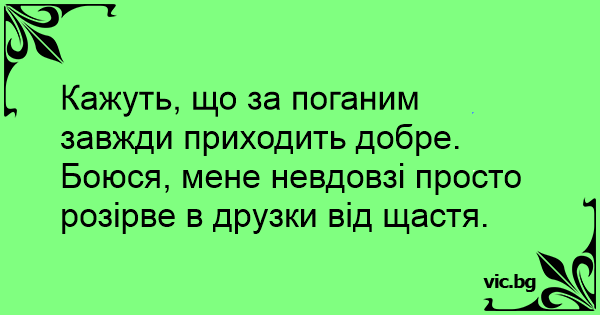 Кажуть, що за поганим завжди приходить добре. Боюся, мене невдовзі просто розірве в друзки від щастя.
