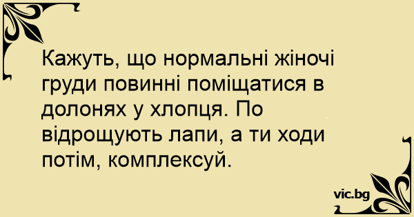 Кажуть, що нормальні жіночі груди повинні поміщатися в долонях у хлопця. По відрощують лапи, а ти ходи потім, комплексуй.